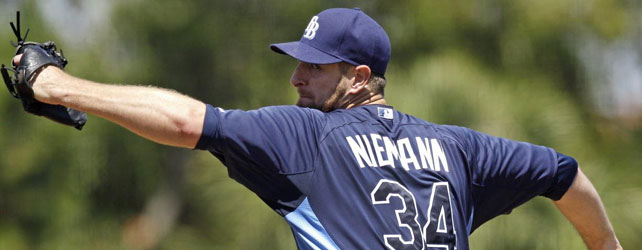 Tampa Bay Rays right-hander Jeff Niemann was forced out of Monday night’s game at Toronto after taking a grounder off his right foot in the first inning. Niemann was struck on the foot by Adam Lind’s drive with runners at first and second.