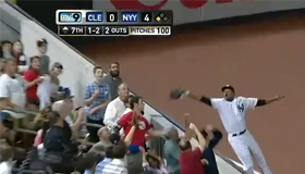 Yankees reserve left fielder Dewayne Wise made what appeared to be a spectacular catch in the seventh inning, as he flipped into the stands. Umpire Mike DiMuro, waited for a few seconds for wise to emerge from the crowd. When he did DiMuro called it a catch and an out.