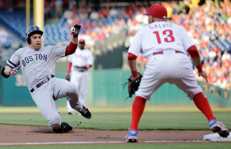 The Boston Red Sox pounced on Philadelphia Phillies pitching with four runs in the first inning and Jacoby Ellsbury set a team record with five stolen bases as the Red Sox beat the Phillies 9-2.